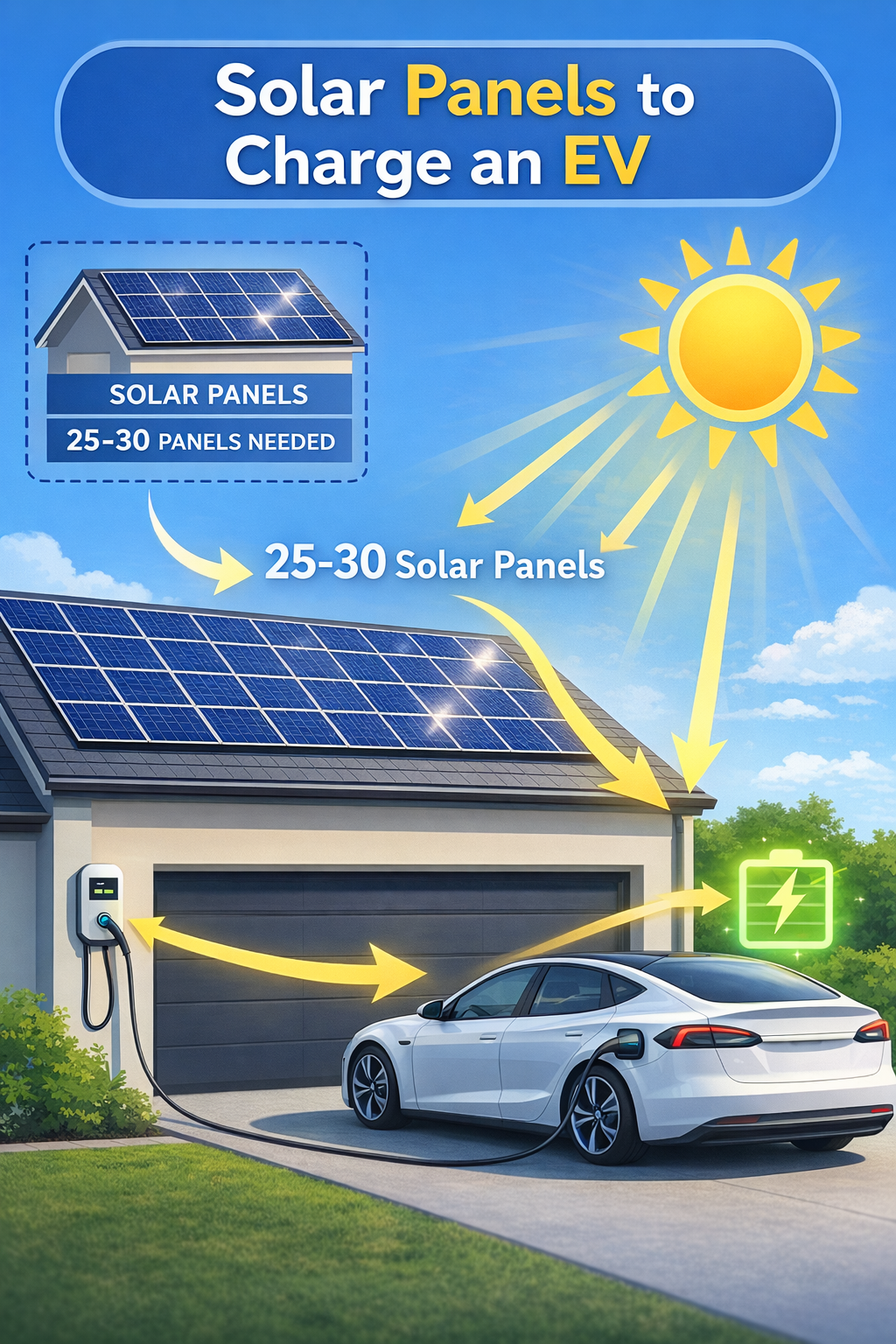 For typical driving patterns of 30–40 miles per day, charging a Tesla requires the electricity generated by roughly 6–10 solar panels.